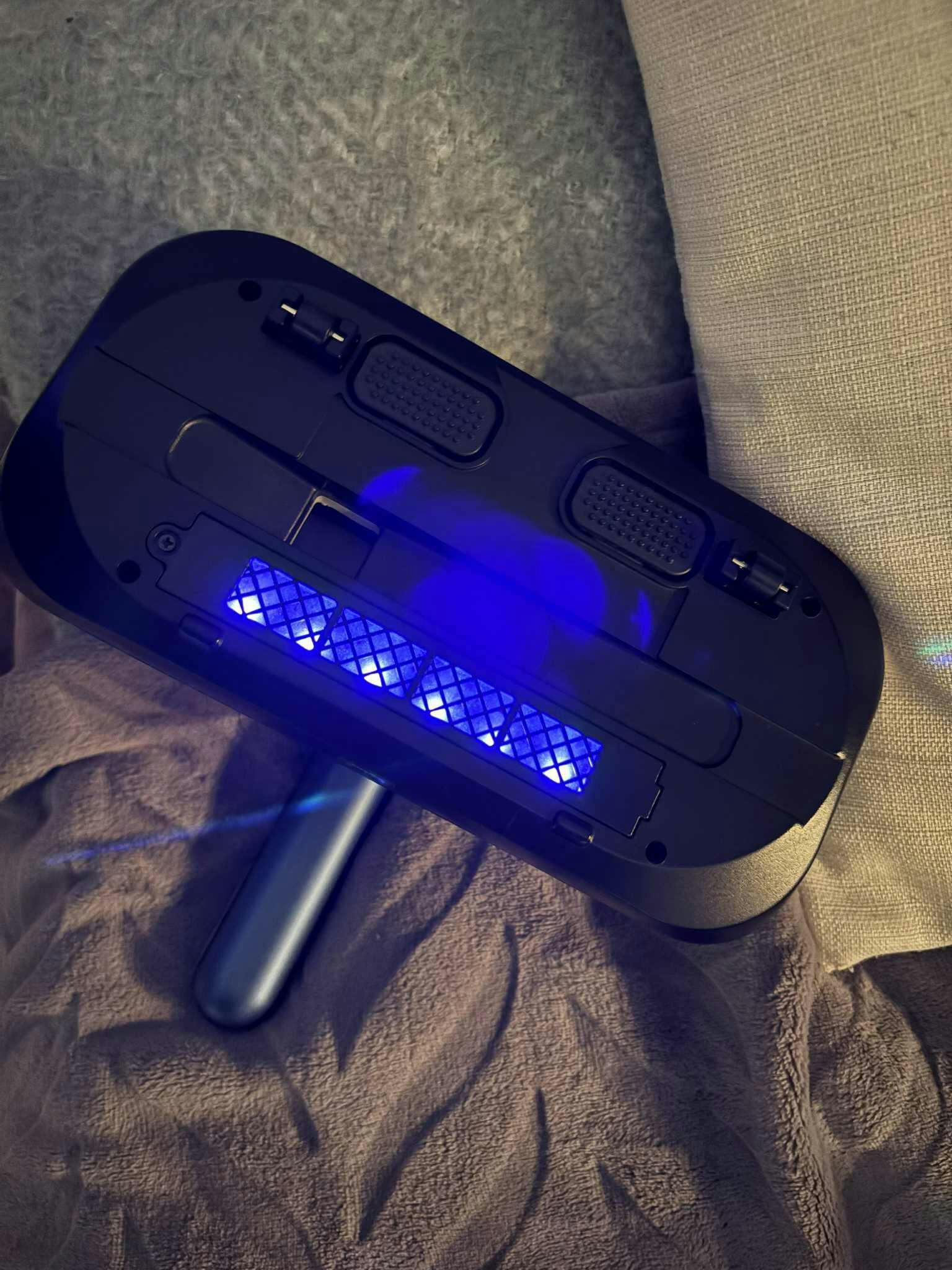 Det inbyggda UVC-ljuset (253,7 nm) bestrålar ytan under dammsugningen.